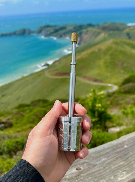 Le Pressoir by Mokaïa mesure 3,3 × 16,5 cm (1,3 × 6,5 inches) et pèse 102 g (3,6 oz).